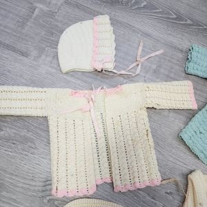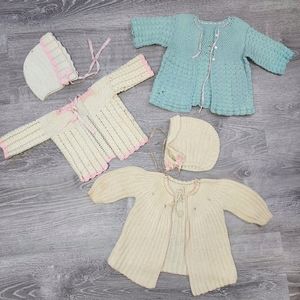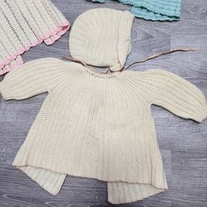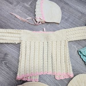 VINTAGE 5 Piece Crochet Sweaters and Bonnet Hat Bundle Lot
