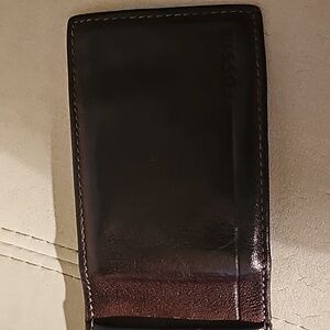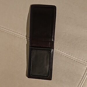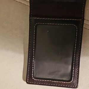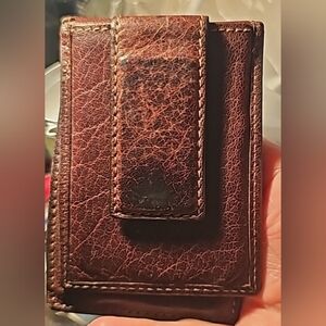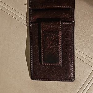 Leather wallet with magnetic flap.