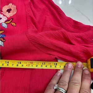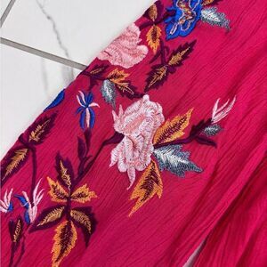 FREE PEOPLE Red Mia Mini Gauze Dress with Blue Floral embroidery Sz S EUC