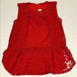 Anthropology Tiny Red Lace Sleeveless Tops
