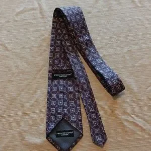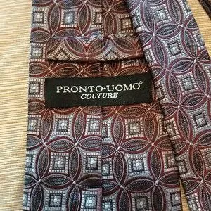 PRONTO• UOMO Couture Geometric Patterned Tie - Burgundy/Blue/Grey