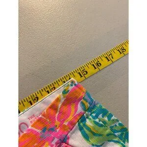 These lively and colorful Lilly Pulitzer shorts feature a scalloped hem design, offering a playful yet sophisticated look. Crafted from 100% cotton, they ensure comfort and breathability, making them suitable for warm weather and casual outings. The vibrant pattern embodies the brand's signature style, adding a cheerful touch to any wardrobe.