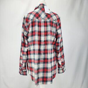 New Time & Tru Womens Large 12-14 White Red Green Button Up Flannel Shirt Cotton