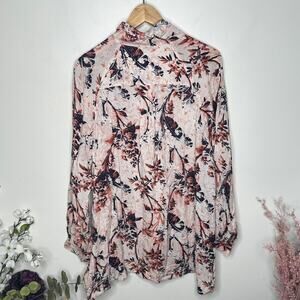 FREE PEOPLE We The Free It's A Vibe Button Down Top Tunic Sz M {3Y51}