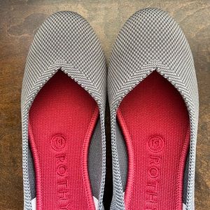 Rothys Women's The Flat Round Toe Size 8 Charcoal Gray Birdseye Red Insole