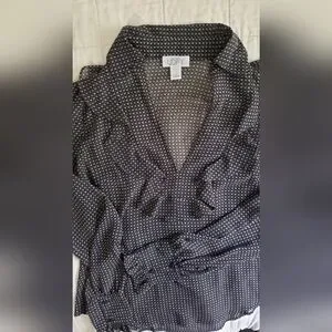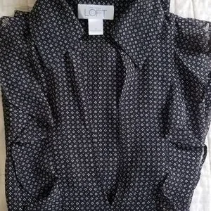 Loft Sheer Black Ruffle Blouse Long Sleeved