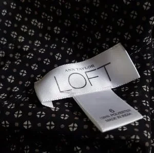 Loft sheer blouse with pluging v neckline and ruffle details. Black with tasteful neutrals of cream and dark tan/gold colors. In excellent condition.