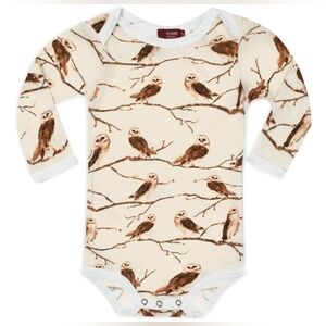 The long sleeve one piece bodysuit is one of Milkbarn's best sellers! Made with 100% Rayon from Bamboo - snuggly soft and sustainable! Snap leg closure.