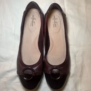Clarks Womens Gracelin Wind Ballet Flat Size 11 M Plum Leather Patent Toe Shoe