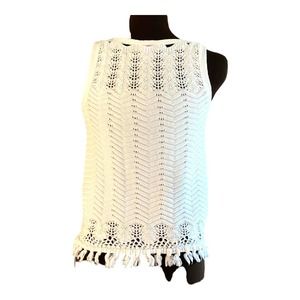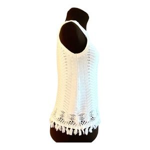 Lilly Pulitzer Brooklyn Sweater tank top white fringe cutouts sleeveless crochet