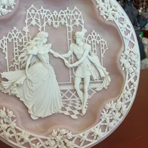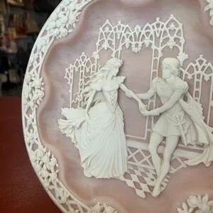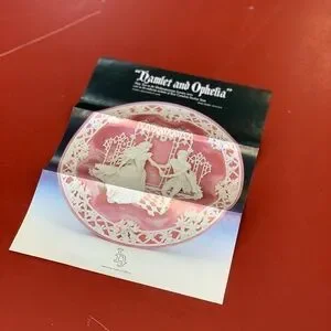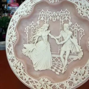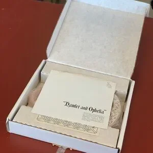 This is a vintage decorative romantic plate made by Incolay Studios of California, in 1990. This one is the Shakespearean Lovers, Hamlet and Ophelia.