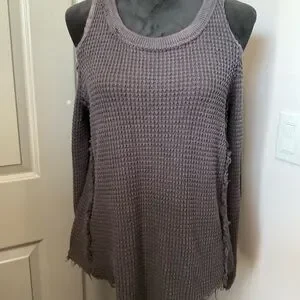 Free People XS Moonshine thermal vee neck cold shoulder sweater in charcoal