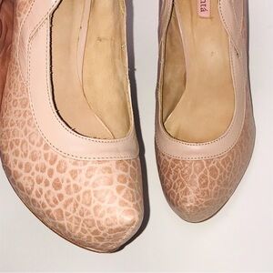 Samanta pink snakeskin print heels leather sz8 wide formal wedding casual boho