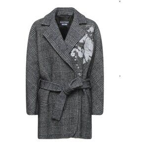 BOUTIQUE MOSCHINO Oversize Coat Size 8 tweed, print, belt, glen plaid, lapel collar, double-breasted, long sleeves, fully lined, snap buttons fastening, multipacket