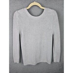 Banana Republic Sweater Womens M Gray Pullover Lace Up Tie Back Chunky Ribbed