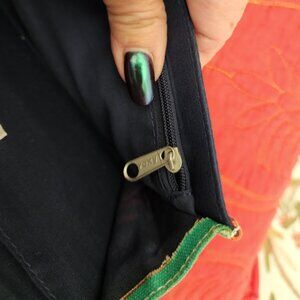Cotton/Canvas exterior and cotton interior (tags still attached) and clean inside
