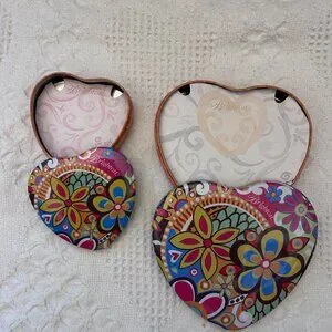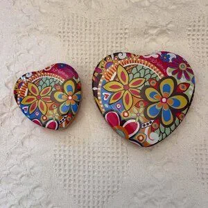 Two Brighton Tins - one Large & one Small. Cute front with lots of colorful Flowers and the back side is a pretty Orange color. Great for giving a gift or keeping little treasures inside... a lot to the imagination. See picture for better description and sizing.