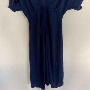 NWT Short Sleeve Navy Blue Ruched Front Flowy Midi Dress Small Medium Large