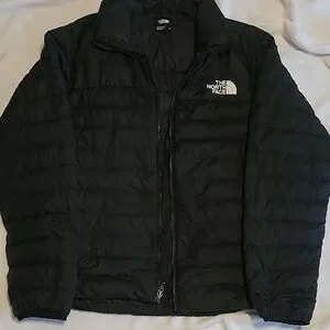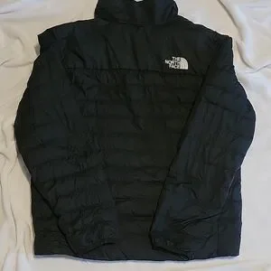 This stylish puffer jacket from The North Face features a striking black and white color scheme designed for warmth and comfort. An ideal choice for outdoor activities and everyday wear. Lightweight. Great Condition!! See Pics