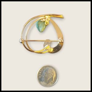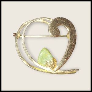 Green Aventurine open heart brooch in gold tone metal