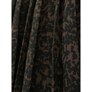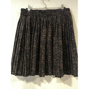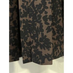 Pleated front and back. Flattering A-line. Comfy elastic waist! Black & dark brown pattern (kind of a cross between a small botanical pattern and an animal print.) Knee length. See measurements in photos. 100% polyester. Lightweight; unlined. Great for work / office / business / professional attire, with a blouse and heels, or just as great made casual with a jean jacket and sneaker! Easy care; machine wash and wear!