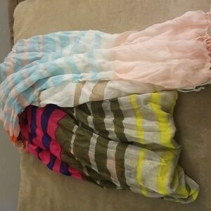 Old Navy large multicolor scarf. Not a heavy or wool like feel. Very lightweight and soft.