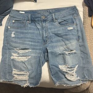 Soft and Baggy American Eagle Light Wash Shorts Sz 8. Can wear cuffed or uncuffed. Cute rips on front. Super comfy! Lightly worn.