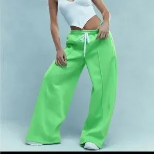 Super cute neon green sweats with pockets. Never worn. See the highlighted measurements in the last picture. They are thick material with elastic waist. Very cute.