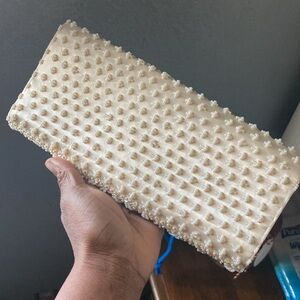 This beautiful vintage beauty is the perfect classy touch to an amazing outfit. Beautiful clean white/cream color with beads that look almost iridescent when sunlight hits.