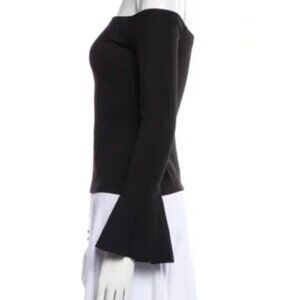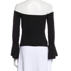 Alexis Lindes Black Off The Shoulder Bell Sleeve Stretch Cropped Top Large
