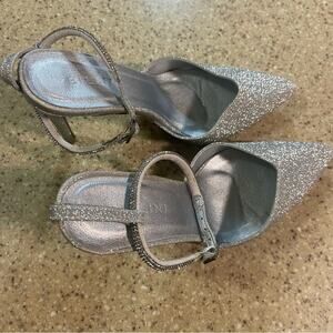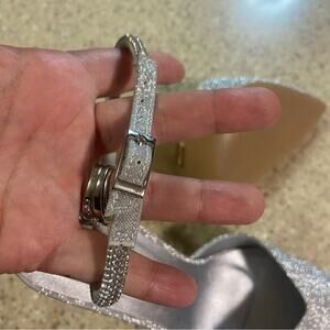 Billini Esara Silver Glitter Rhinestone Ankle Strap Pumps