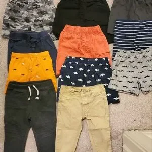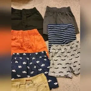 Variety of boys' shorts and pants. Includes camo, striped, and solid designs. Perfect for casual wear.