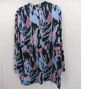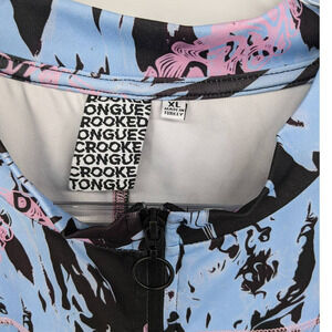 Crooked Tongues Blue Pink Black Long Sleeve Mini Dress XL