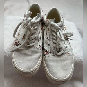 Floral Old Skool vans women’s size 6.5. True to size. Adjustable laces. Cream/ off white. Floral pattern. Great condition! Gently used. No flaws.