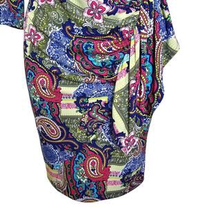 New York and Company Dress Womens XS Multicolor Paisley Faux Wrap Long Sleeves
