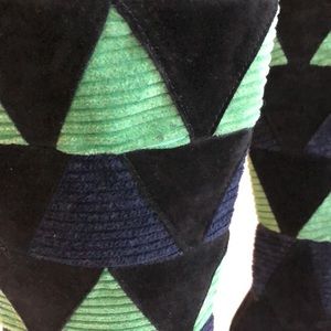 Black suede.. Green and blue corduroy.