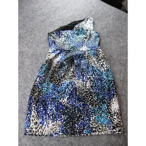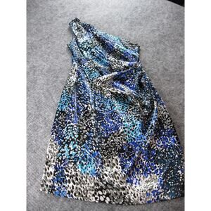 Maggy London Dress Women 8 Blue One Shoulder Satin Ruched Flattering Ladies