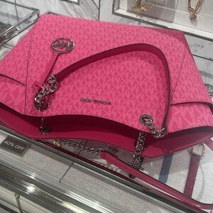 Elevate your style with the Michael Kors Pink Tote Bag. This chic accessory features a vibrant pink color and signature MK charm, perfect for any occasion.