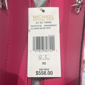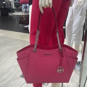 MICHAEL KORS Jet Set Travel Large Signature Chain Shoulder Tote Bag Dragonfruit