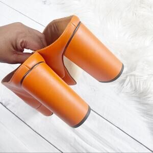 🆕 Alohas Women's Clock Out Leather Pomelo Orange Mules Heeled Sandals Size 39