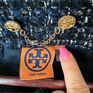 Tory Burch Anabelle Coat, boucle tweed, navy blue and black, size 6(Small)