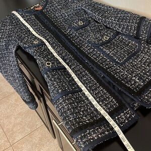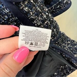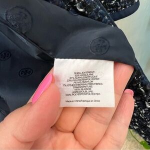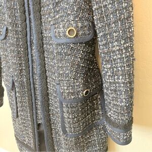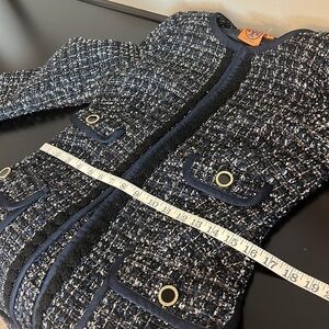 Tory Burch Anabelle Coat, boucle tweed, navy blue and black with specks of cream , size 6(Small)