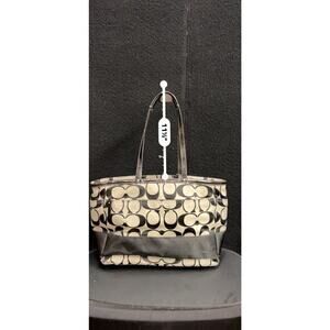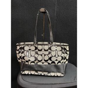 Coach F19202 Grey/Black Signature & Leather Trim Baby Bag/Tote Bag
