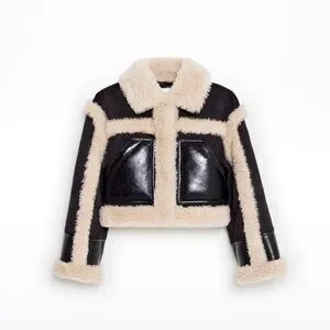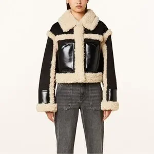 Stand Studio Black Faux Leather Shearling Edith Jacket Cropped 6/42 IT