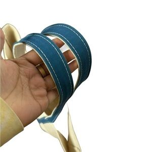 LL BEAN Boat & Tote Ivory Canvas Teal Trim Embroidered Purse Tote