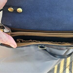• Antique brass-tone exterior hardware & 1 zip pocket
