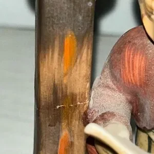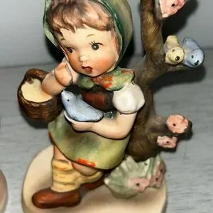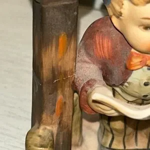 2 Adorable figurines that stand approx 5” in height. The lamppost near the little boy has been repaired (see last photo) but otherwise great vintage condition.