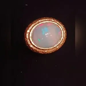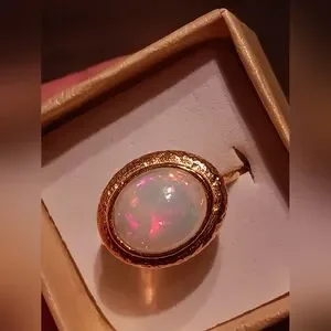 This stunning Opal ring features a vibrant Ethiopian Opal set in a luxurious gold plated band. 925 sterling silver Perfect for adding a touch of elegance to any outfit.