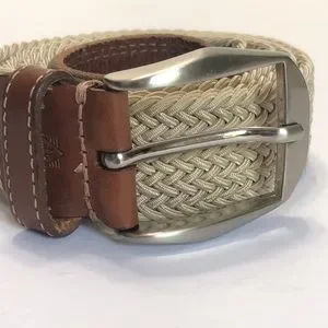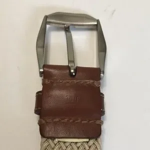 Tan Brown Stretch Woven & Leather Buckle Belt size 40