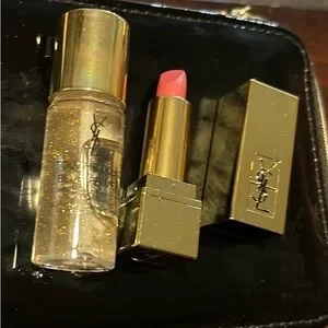 YSL Yves Saint Laurent Travel Zipper Cosmetic Case w/ Primer & Lipstick - New